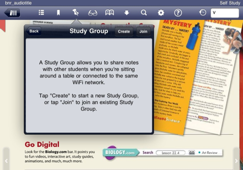 - Create Study Groups to share notes with friends via the iPad's BlueTooth connection or in the same WiFi Hotspot